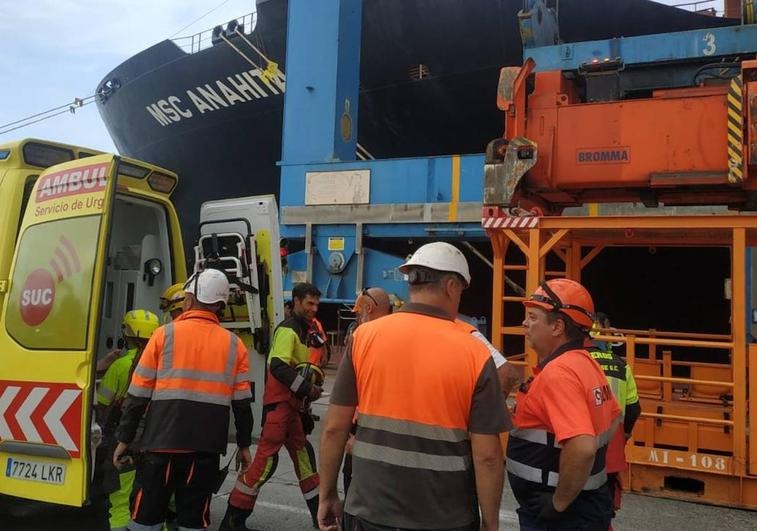 Un trabajador tuvo que ser rescatado en el buque Anahita, en el muelle Virgen del Pino, en el Puerto de Las